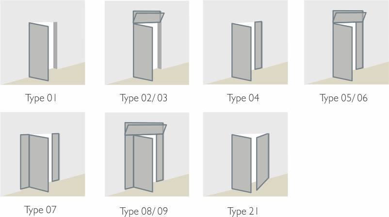 The following door versions are possible (opening inward, view from the inside):